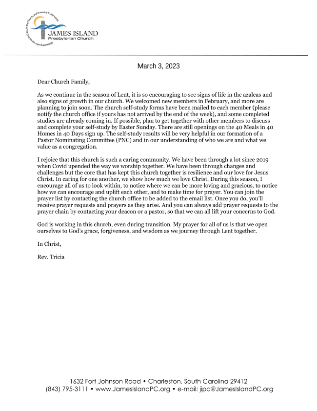 James Island Presbyterian Church is an Earth Care Congregation. We are joining together in our collective responsibilities as stewards of God’s creation.